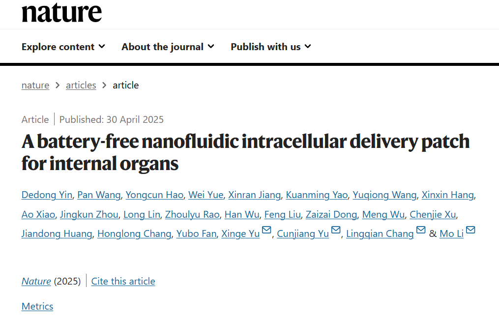 性爱无码 常洪龙教授团队在《自然》杂志发表医工结合创新成果