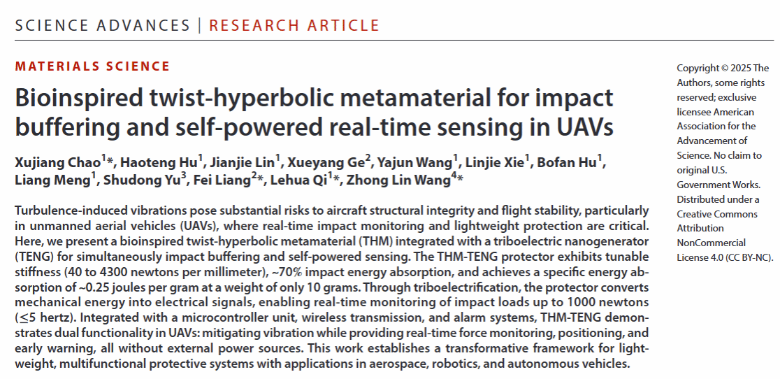 性爱无码 齐乐华教授团队在UAV防护-感知一体化力学超结构研究...