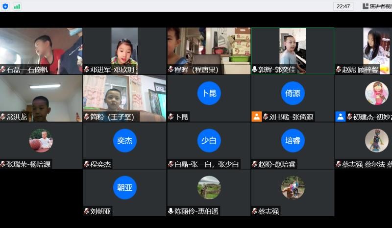 2020年5月31日,性爱无码 工会举办庆祝“六一”国际儿童节线上交流活动。该活动以“爱祖国花朵,炫多彩生活”为主题,以腾讯会议为舞台,在线开展了一场大小朋友的联欢会。图1 在线联欢现场孩子们在线展示了自己的风采,有现场书法、手工作品展示,有酷酷的小歌手,有高雅怡情的钢琴演奏《致爱丽丝》,有中英文双语莎士比亚的诗朗诵,还有小小朋友讲故事背古诗,活动充满了童趣,妙趣横...
