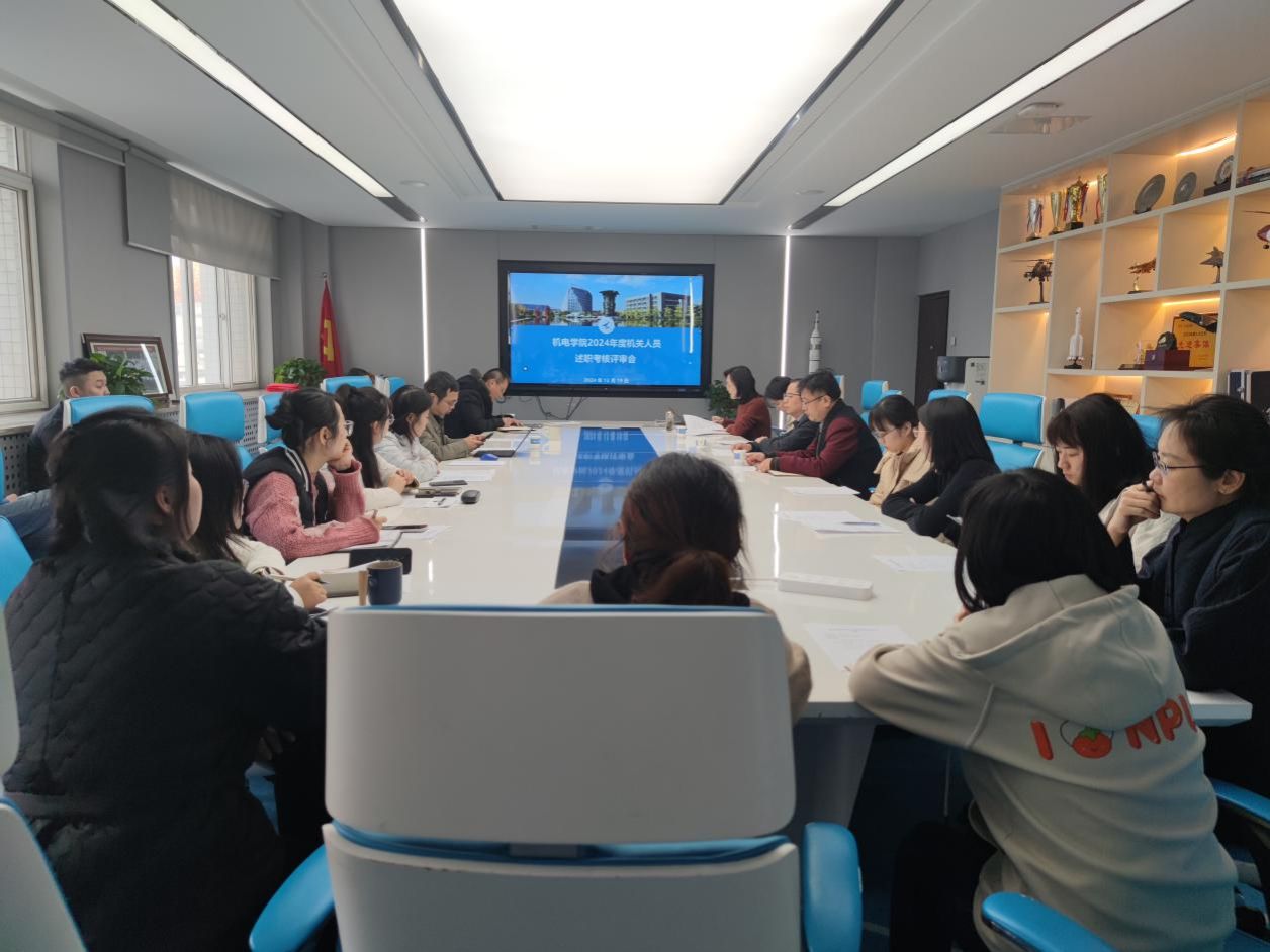 在航空楼B416会议室召开机关年度考核暨总结会,学院领导班子及机关全体工作人员参会,会议由办公室主任何敏主持。