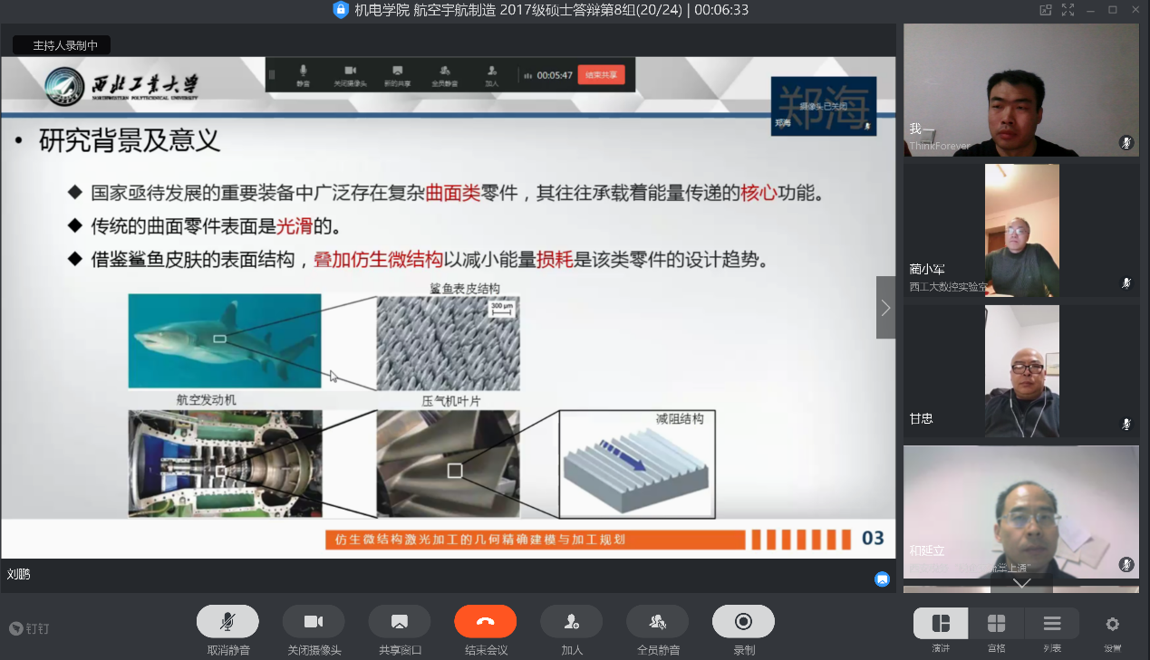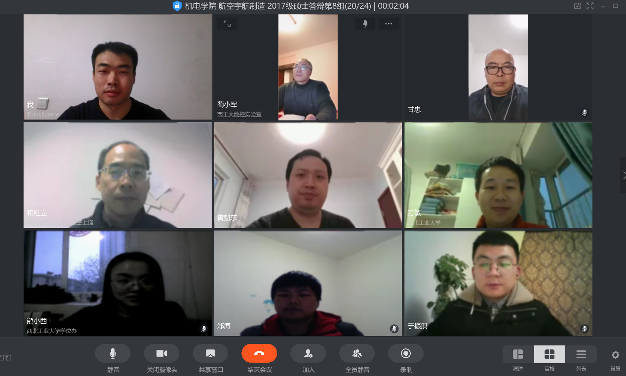正式启动了2017级全日制硕士研究生的视频答辩会议,航空宇航制造工程专业的温丹阳等9名硕士研究生顺利完成了答辩。