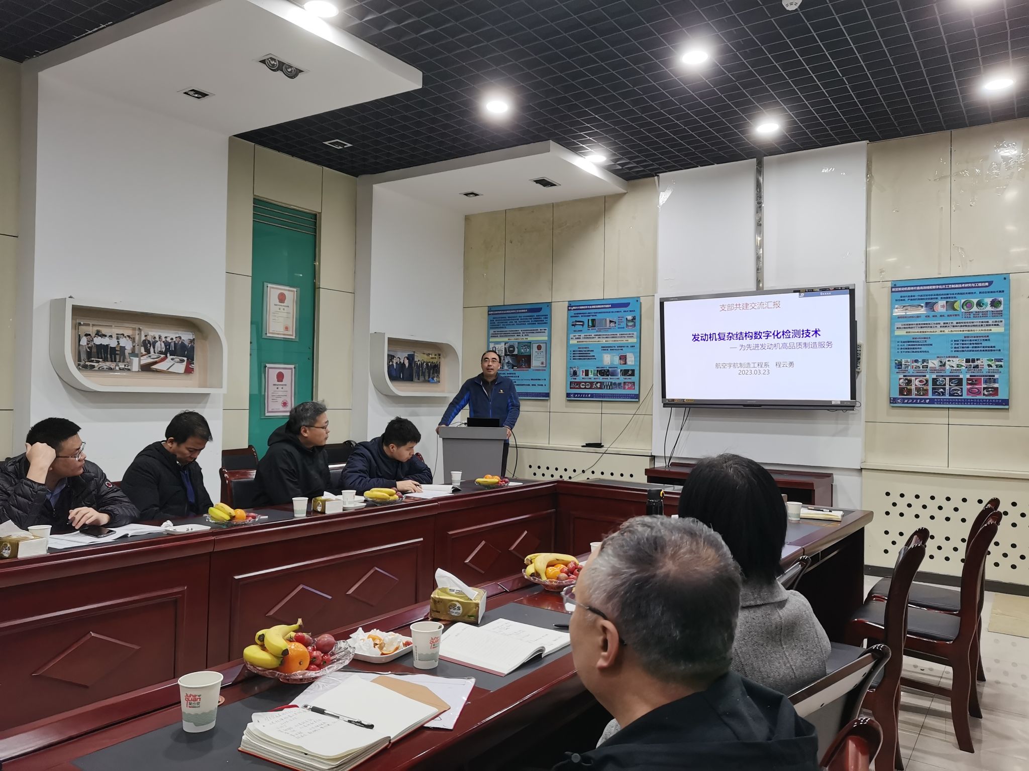 航空宇航制造工程系第一党支部邀请了“大国工匠”何小虎所在的西安航天发动机有限公司35车间党支部来校交流,开展了支部共建活动。会议由支部书记王明微同志主持,党员、入党积极分子等共20余人参加。