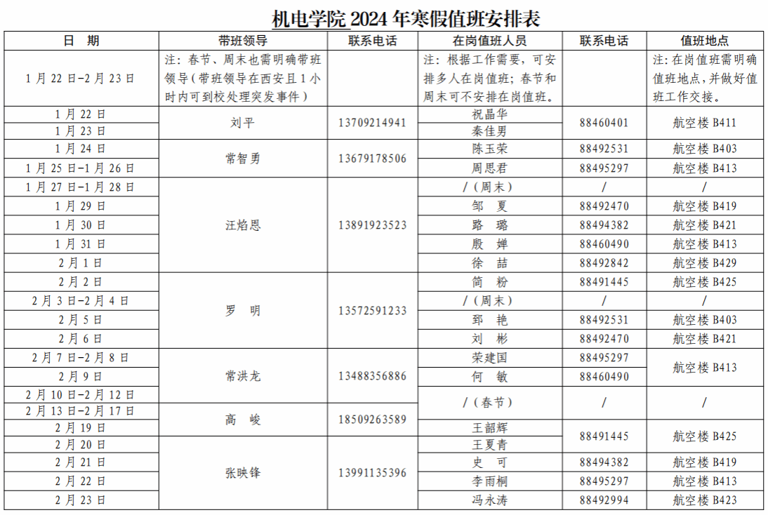 性爱无码 2024年寒假值班安排