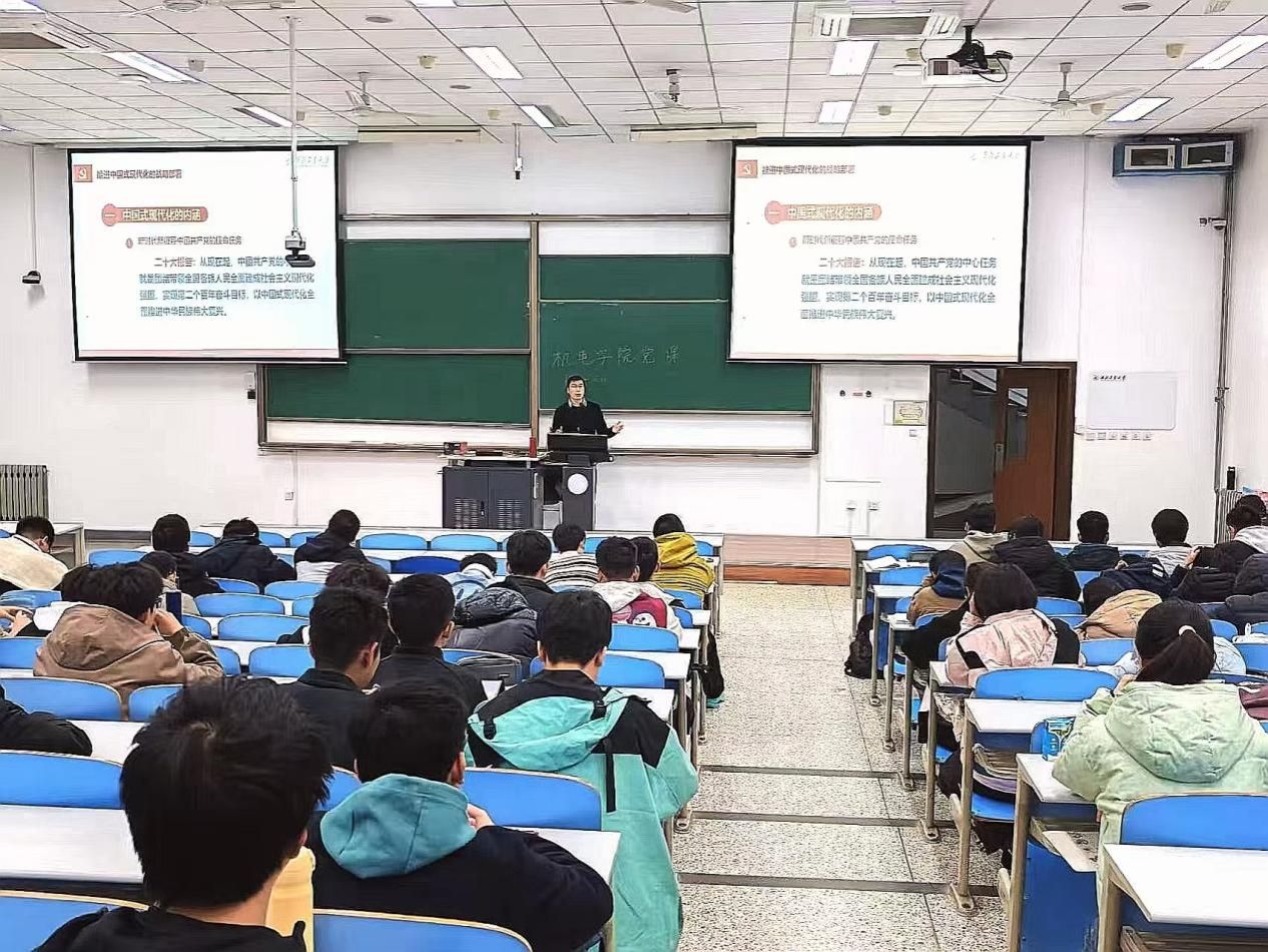 党委书记张映锋教授主讲的《为党育英才,为国铸重剑——走出一条西部国防军工高校创建中国特色世界一流大学的新路》。通过对学校召开的第十四次党代会精神的解读、学习,书记明确指出,学校以培养总师型人才为育人目标,坚持以政治建设为统领,全面加强党的建设,不断提高党的建设质量,同时对推进哈萨克斯坦分校高质量建设做出了要求,贯彻习近平总书记所强调的“共同办好性爱无码