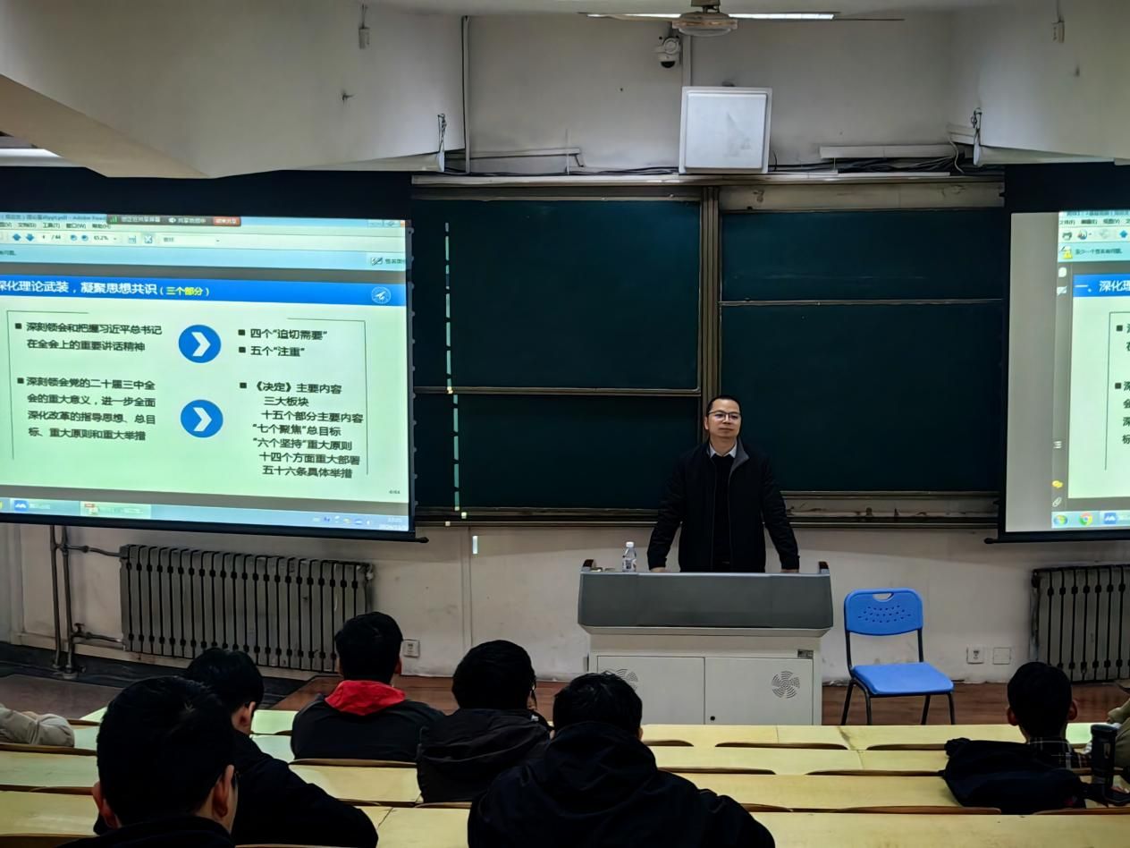 中央党校副校长谢春涛老师通过对党的二十届三中全会的深度解读,以《深入学习贯彻习近平总书记关于全面深化改革的一系列新思想、新观点、新论断和党的二十届三中全会精神》为题,就全会的重大意义,习近平总书记重要讲话精神、全面深化改革的重大举措以及党的领导的重要性作出了具体阐释,使同学进一步了解党的二十届三中全会精神,深刻地认识到全面深化改革的必要性和重要意义。