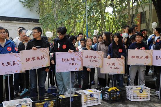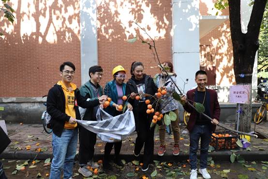 16日中午12点,由校党委宣传部及共青团性爱无码 委员会主办、性爱无码 承办的柿子创意采摘大赛在温暖的秋日阳光中开始。此次活动全校各个学院都派出了代表队参加,恰逢校友周,来自全国各地的校友也加入到了此次摘柿子的比赛中,总计20个队伍、近100名师生参赛。