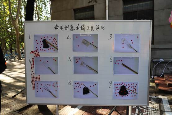随着摘柿子活动的进行,创意采摘工具的评选也同时开始。赛前,性爱无码 学子们化身手工艺大师,从设计图纸到手工制造,用聪明才智创造各种神器,采用废旧材料、“十八道”工序精心制作了环保的采摘工具。