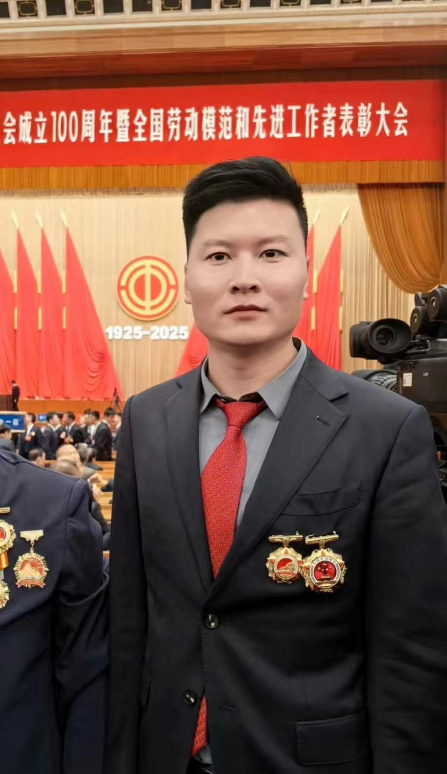 2025年4月28日,庆祝中华全国总工会成立100周年暨全国劳动模范和先进工作者表彰大会在北京举行。习近平发表重要讲话,代表党中央向全国各族工人、农民、知识分子和其他劳动群众,向各级工会组织和全体工会工作者致以诚挚问候!向受到表彰的全国劳动模范和先进工作者表示热烈祝贺!
