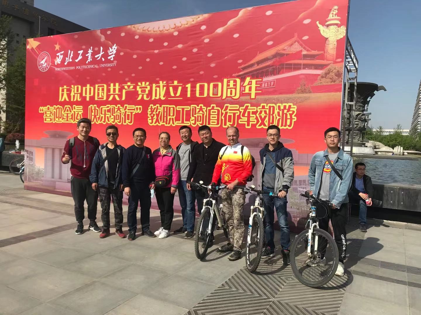 各位教职工的骑行路线是:西工大长安校区——环山路(往东)——沣裕口路口——西沣南路与盛丰路交界口——返回西工大长安校区何尊广场。骑行过程中大家挥洒汗水,正如某位不知名诗人所作:骑车郊外去踏青,鸟语花香醉清风;灿烂春光怡心情,归来颜面似美容。
