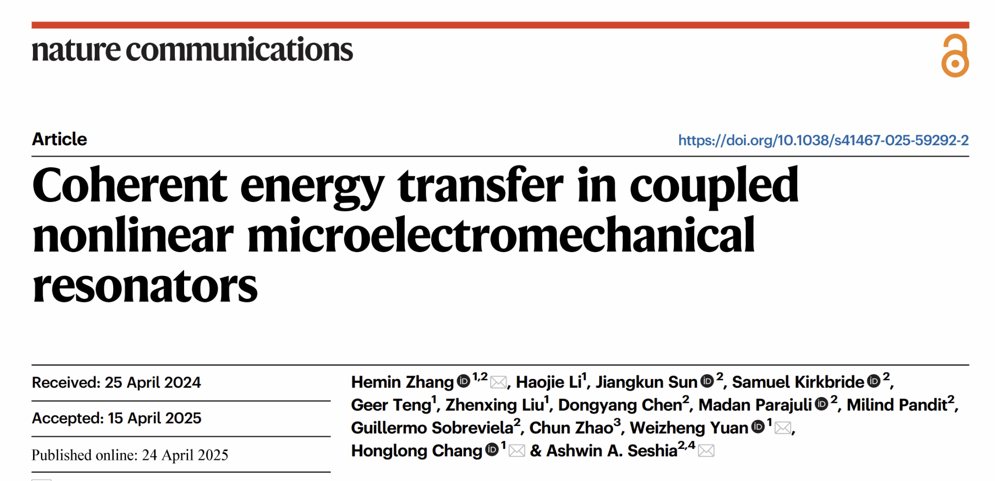 国家级青年人才张和民教授为第一作者,常洪龙教授、苑伟政教授和剑桥大学Ashwin A. Seshia教授为共同通讯作者。